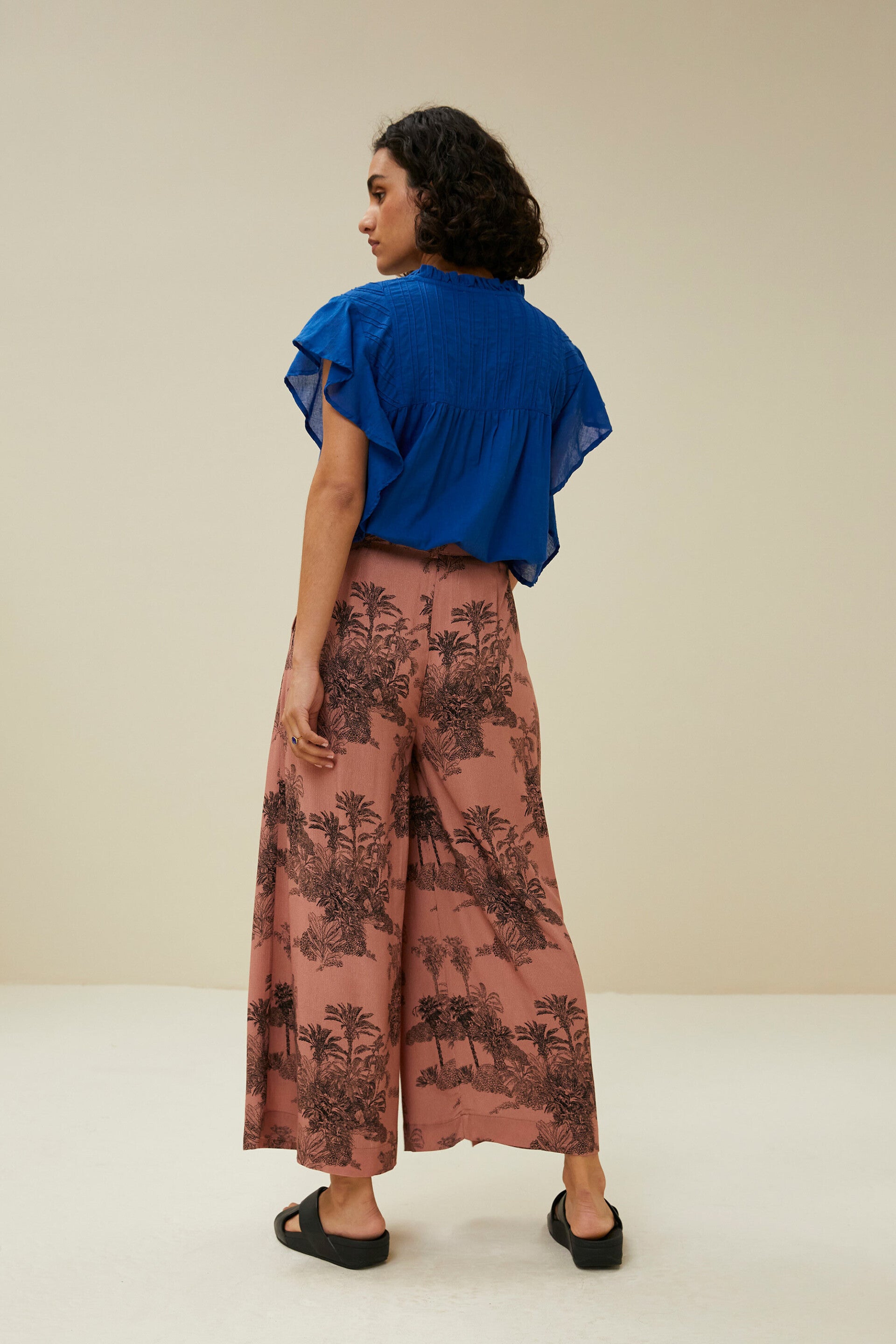Deze prachtige zomerse blouse is gemaakt van een luchtige 100% katoen kwaliteit, dit zorgt ervoor dat ze gewichtloos aanvoelt op de huid. De korte mouwen vallen golvend langs de zijkant van de blouse naar beneden. De blouse heeft een ronde halslijn met knoopaansluiting aan de voorzijde, daarbij is de hals voorzien van een subtiel plooiend boordje.