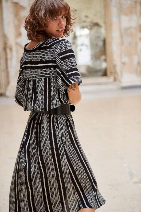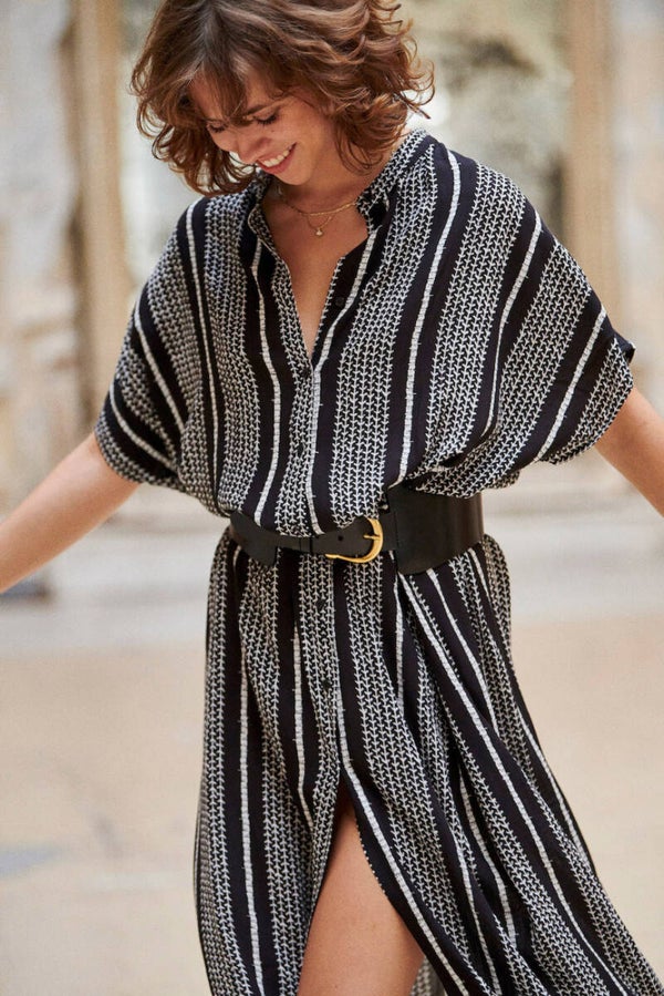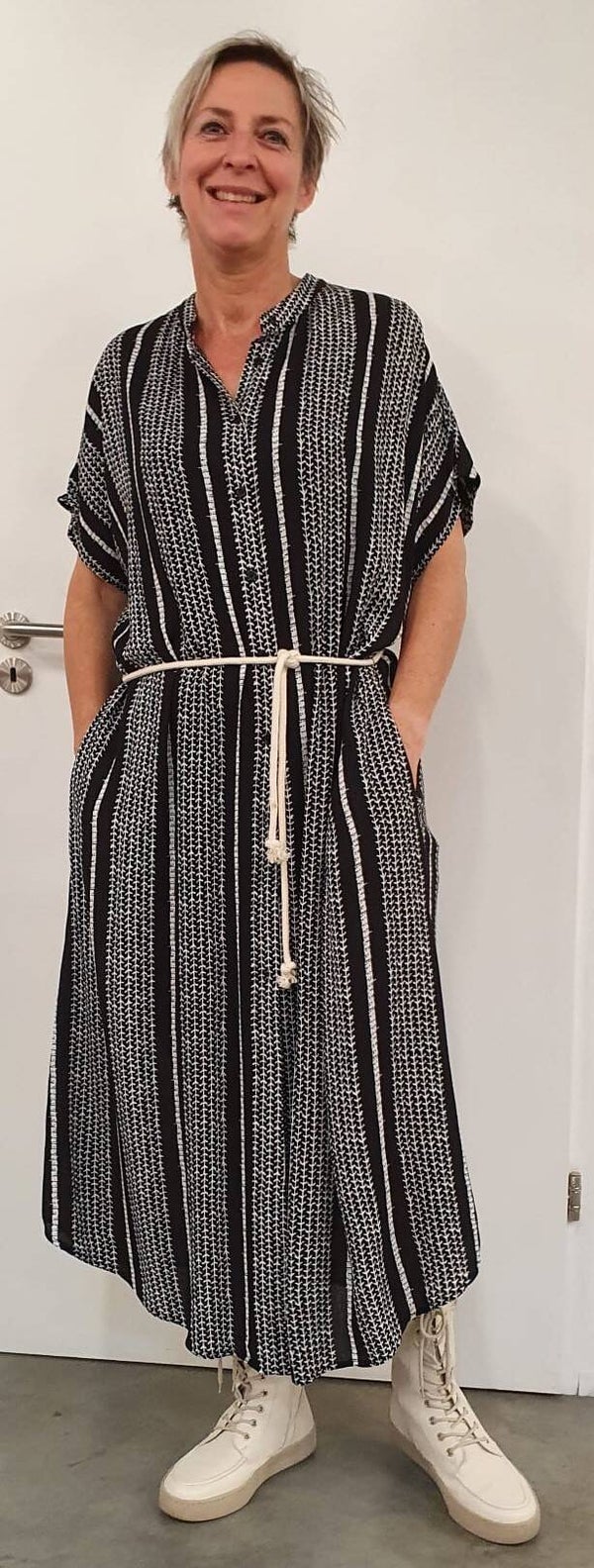 deze super zachte en soepele jurk is gemaakt in een heerlijke viscosekwaliteit. Hij is ekker luchtig en heeft een verslankend effect. Ideaal voor de zomerse dagen en om mee op vakantie te nemen