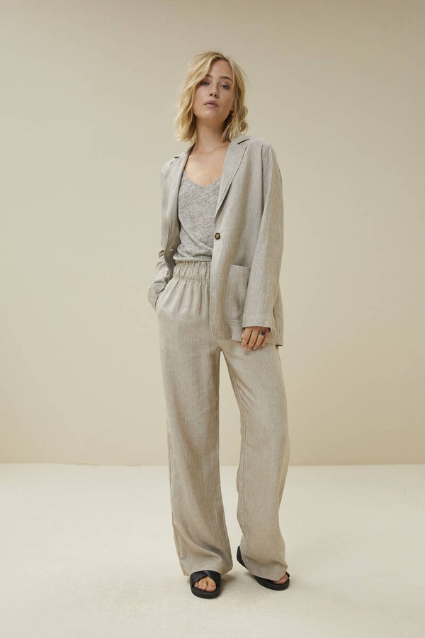 Fijne blazer gemaakt van o.a. lyocel. Deze soepele stof is perfect voor de zomer: de stof ventileert goed & zorgt ervoor dat je huid koel blijft. Daarnaast heeft lyocel nog een voordeel: de vezel voor lyocel stof is gemaakt van houtsnippers, wat minder zwaar is voor het milieu. Er worden namelijk minder zware chemicaliën gebruikt tijdens het productieproces. Combineer de jacket met de bijpassende broek voor eenstoere vrouwelijke look.
