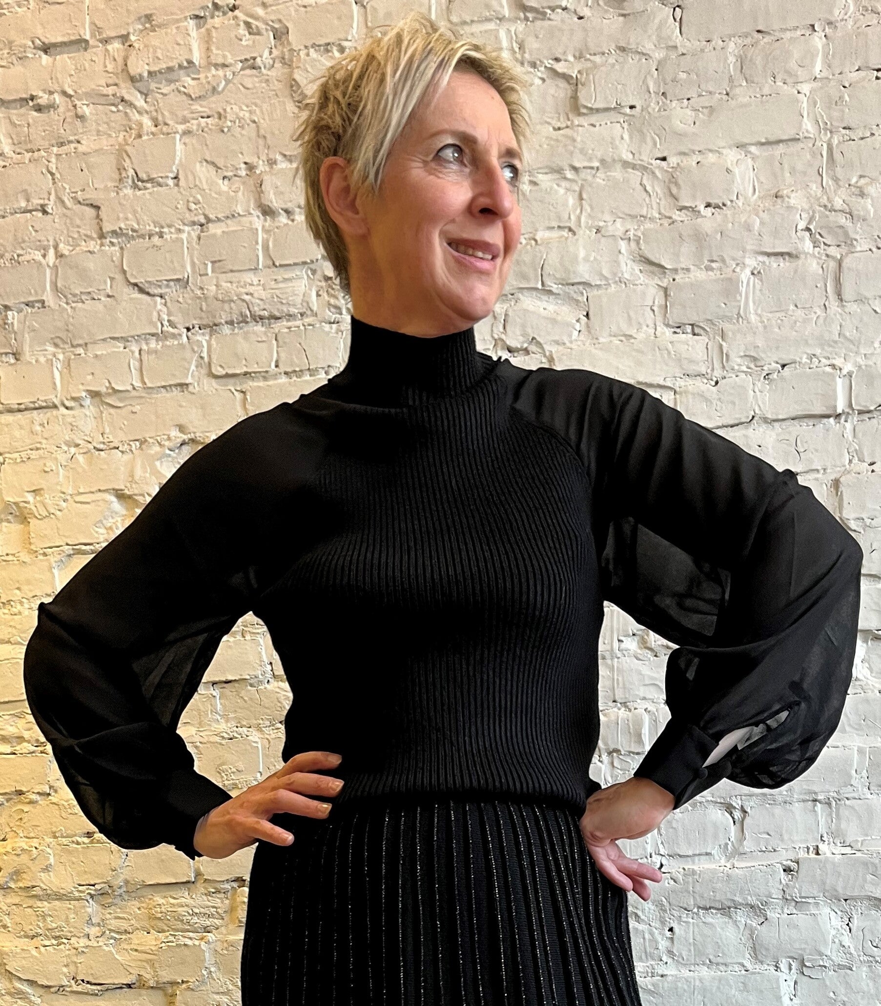 zwart blousje met transparante mouwen