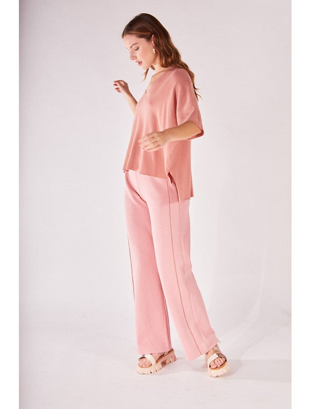 Trendy comfortabel truitje met v-hals en splitten aan de zijkant. De ruit valt achteraan langer. Prikt niet!!!