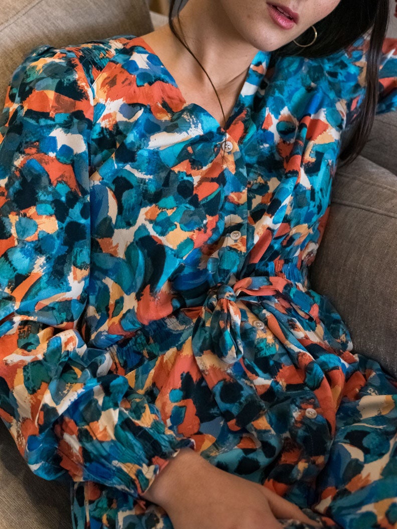 Deze prachtige bloemenjurk is zeer elegant en is getailleerd. De jurk heeft een prachtig bloemenmotief en kan mits de nodige accesoires feestelijk worden gedragen