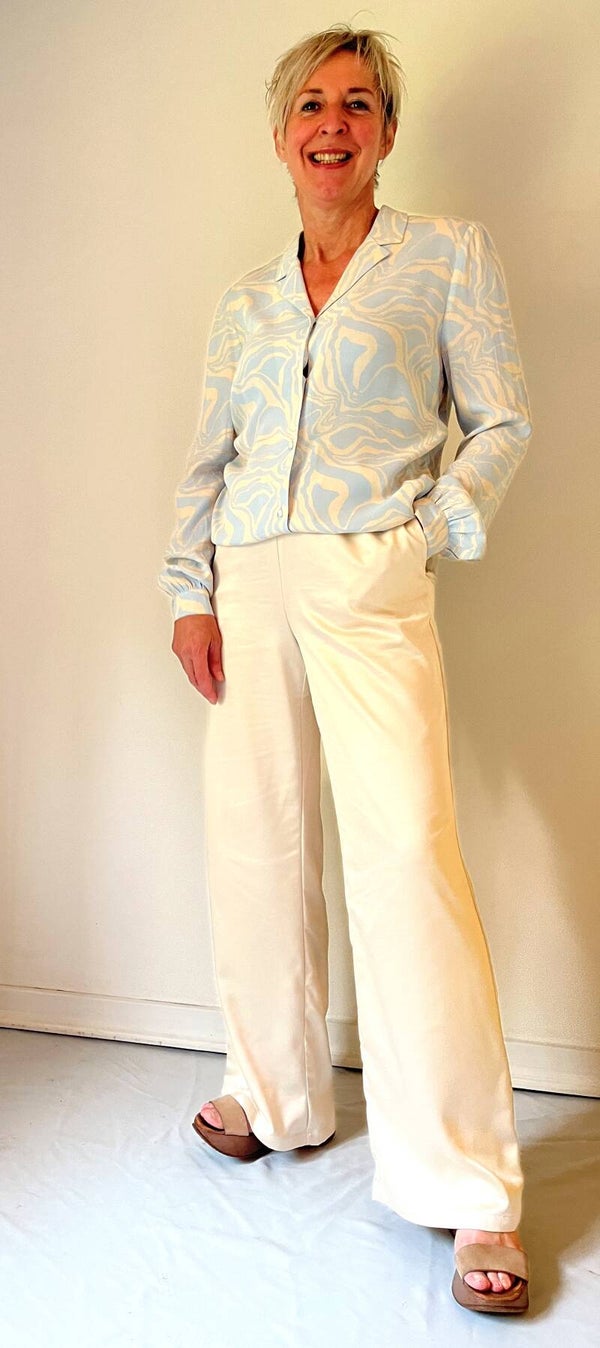prachtig cremekleurig hemdje met zachtblauwe print.