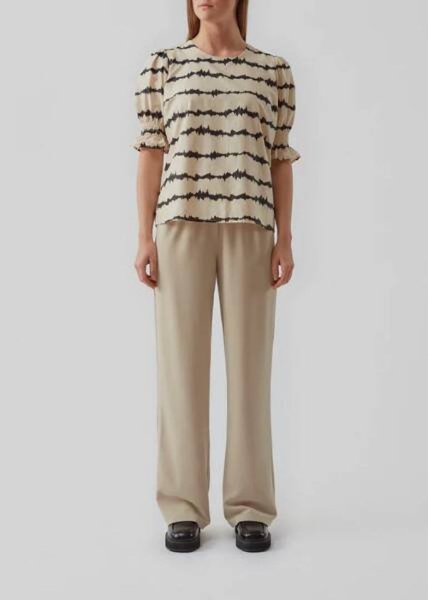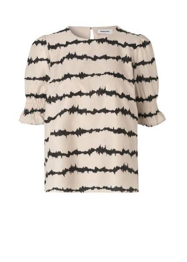 deze leuke tie dye top heeft een losse pasvorm en korte pofmouwen met een smokdetail. Ze is gemaakt van verantwoord katoen. De top heeft een kleine knoopsluiting aan de achterkant.