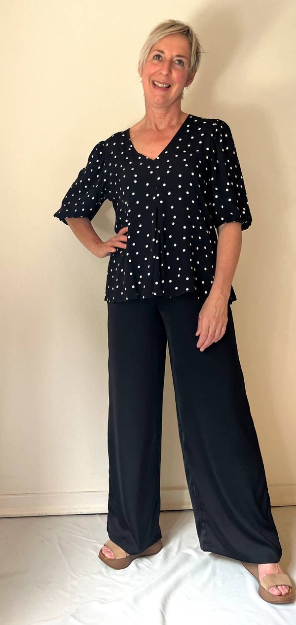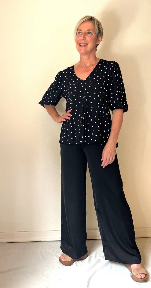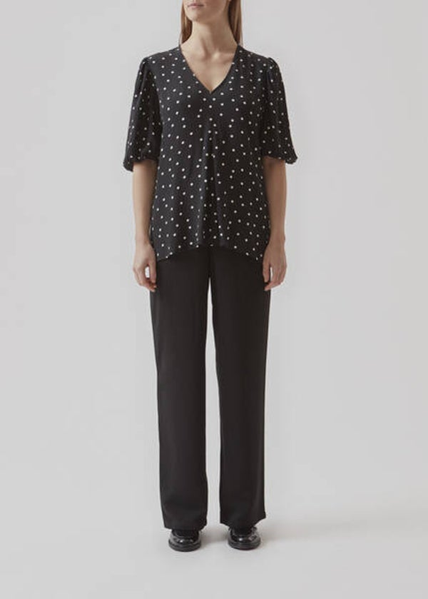 De top heeft een v-hals en halflange mouwen. Comfortabele pasvorm met plooi aan de voorkant. Samenstelling : 51% ecovero viscose 49% viscose