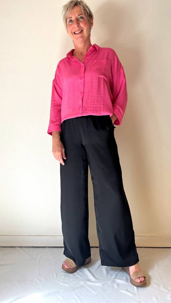 Prachtige roze losvallende blouse met borstzakje en 3/4 mouwen