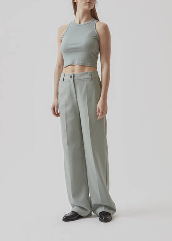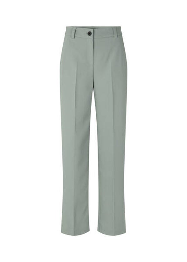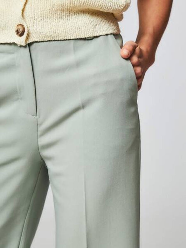 Elegante grijsgroene broek met hoge taille en steekzakken.
