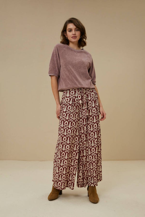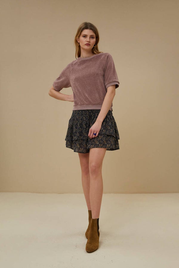Comfortabele top met een ronde halslijn en korte mouwen die iets langer vallen dan normaal. De top is afgewerkt met een ribboord aan zowel de onderkant van de mouwen als aan de onderkant van de top; daarbij zit er een splitje aan beide zijkanten van de top. Hij is gemaakt van een fijne blend van organic katoen en gerecycled polyester en is een echte must-have essential.