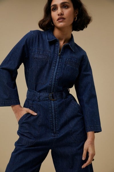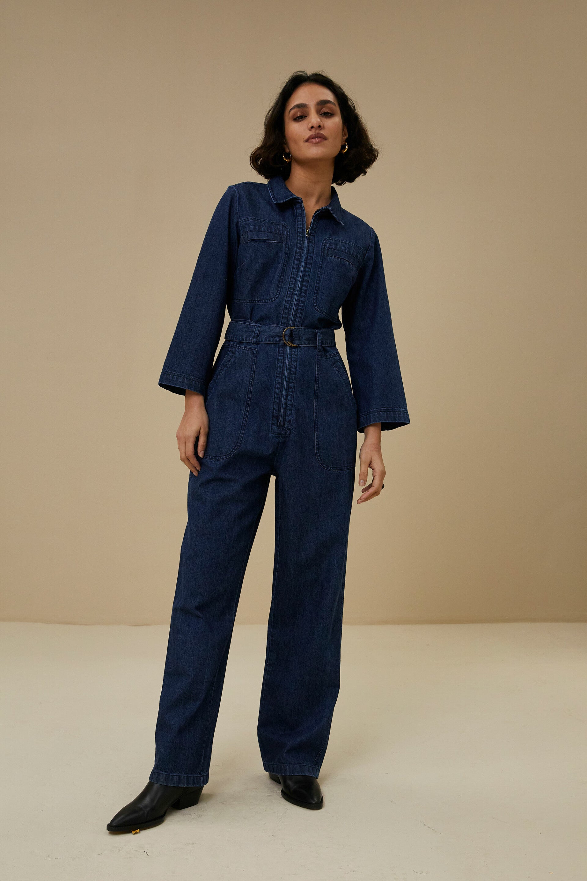 deze heerlijke jumpsuit is gemaakt van een 100% katoen en heeft een aansluitende pasvorm, rechte broekspijpen, twee steekzakken aan de voorkant en achterkant, twee steekzakjes op de borst, een knoopsluiting en hoge taille die voorzien is van een strikceintuur. De suit heeft een optimale pasvorm en creëert de perfecte go to look.