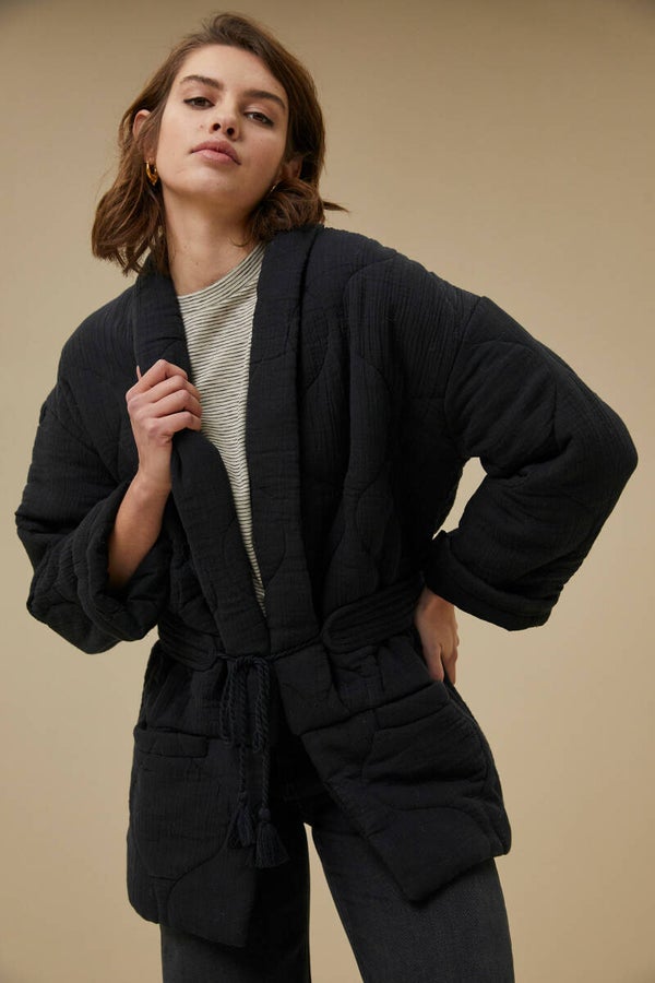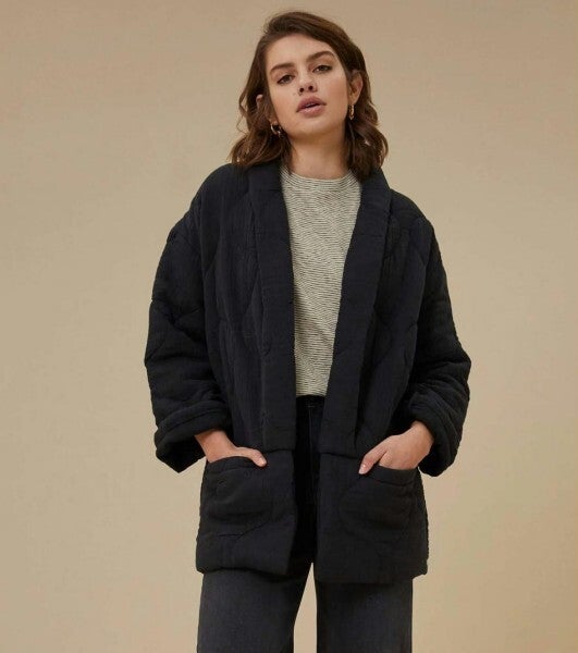Deze jacket is gemaakt van een zachte katoen kwaliteit met gestikte naden waardoor je mooie details krijgt op het jasje. dDe vest heeft twee steekzakken aan de voorkant, een oversized fit en lange mouwen.