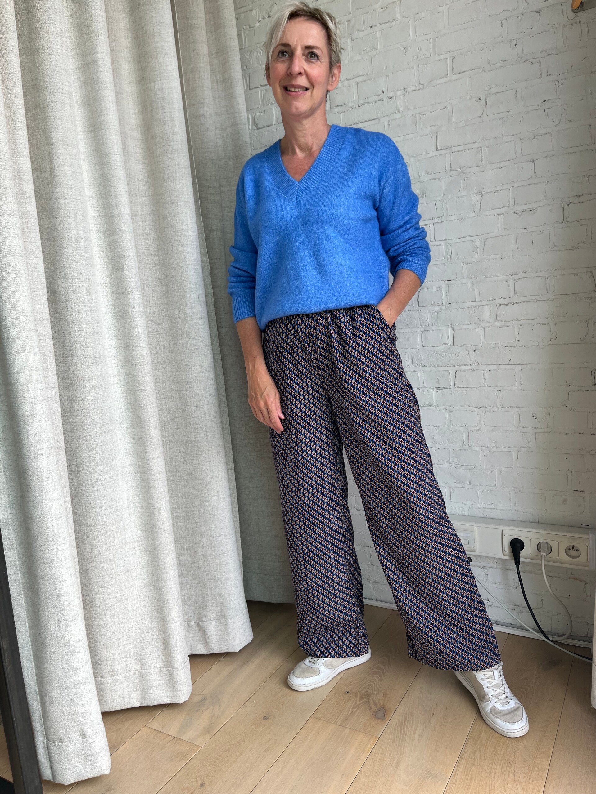 Leuke pullover met v-hals. De pullover heeft lange mouwen en is lekker warm. Een musthave in ieders garderobe. Pasvorm: Normaal Samenstelling: 58% acryl, 29% polyester, 10% nylon, 3% elastaan