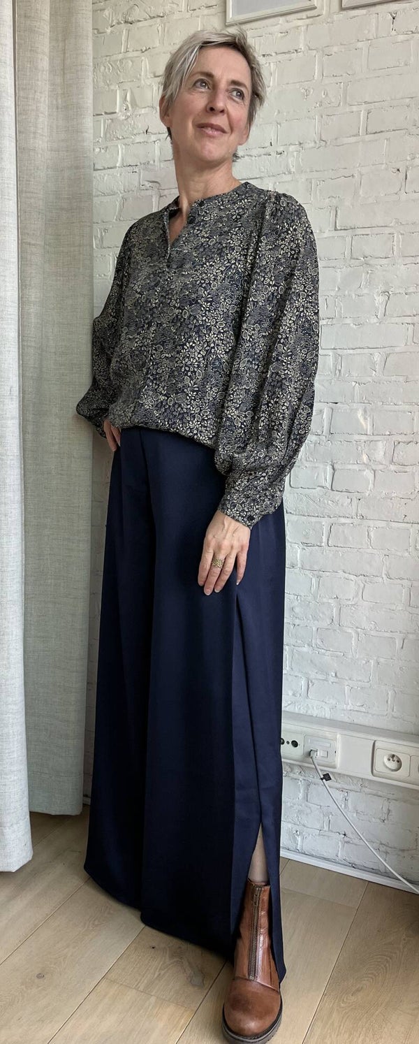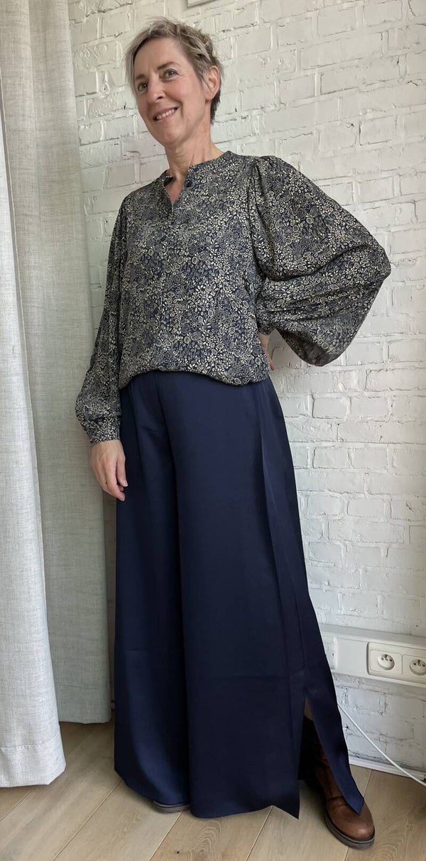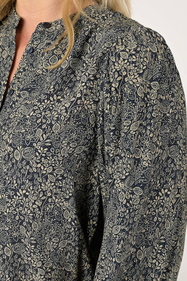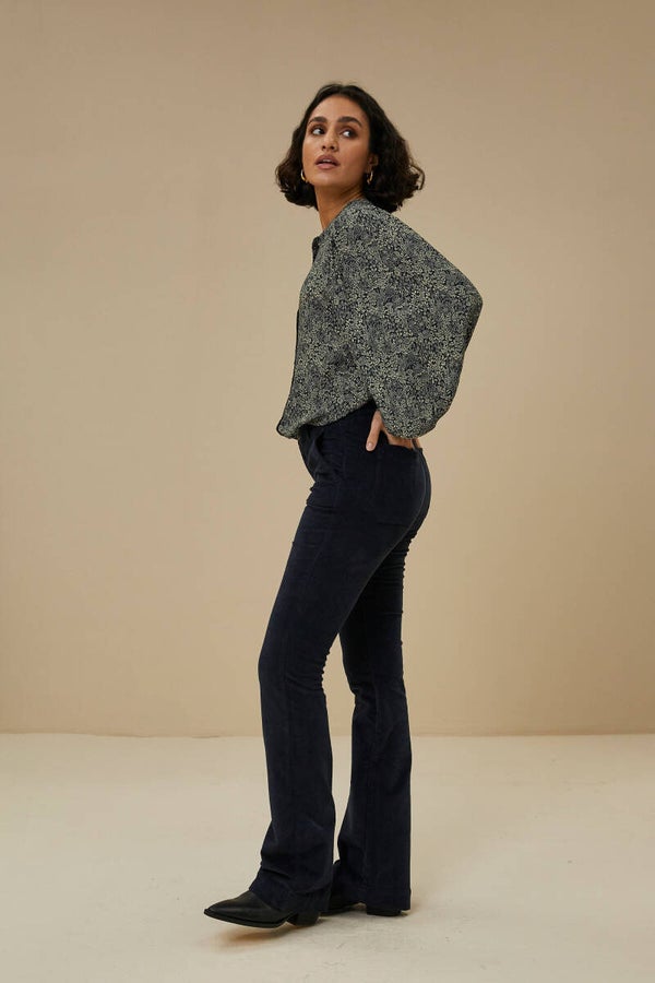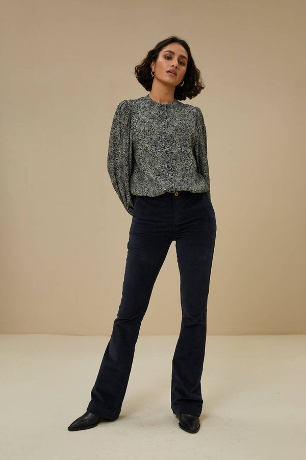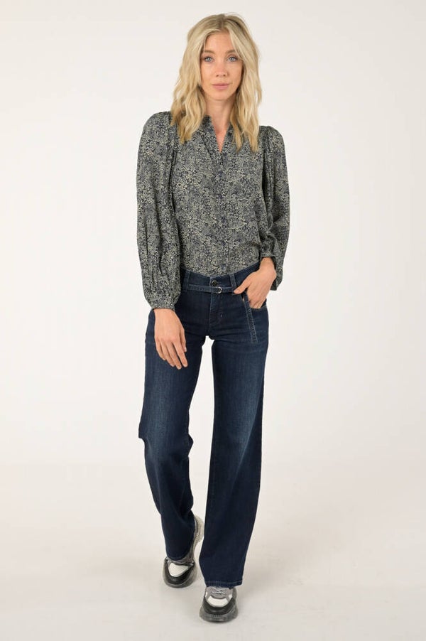 prachtige blouse met inktblauwe bloemenprint