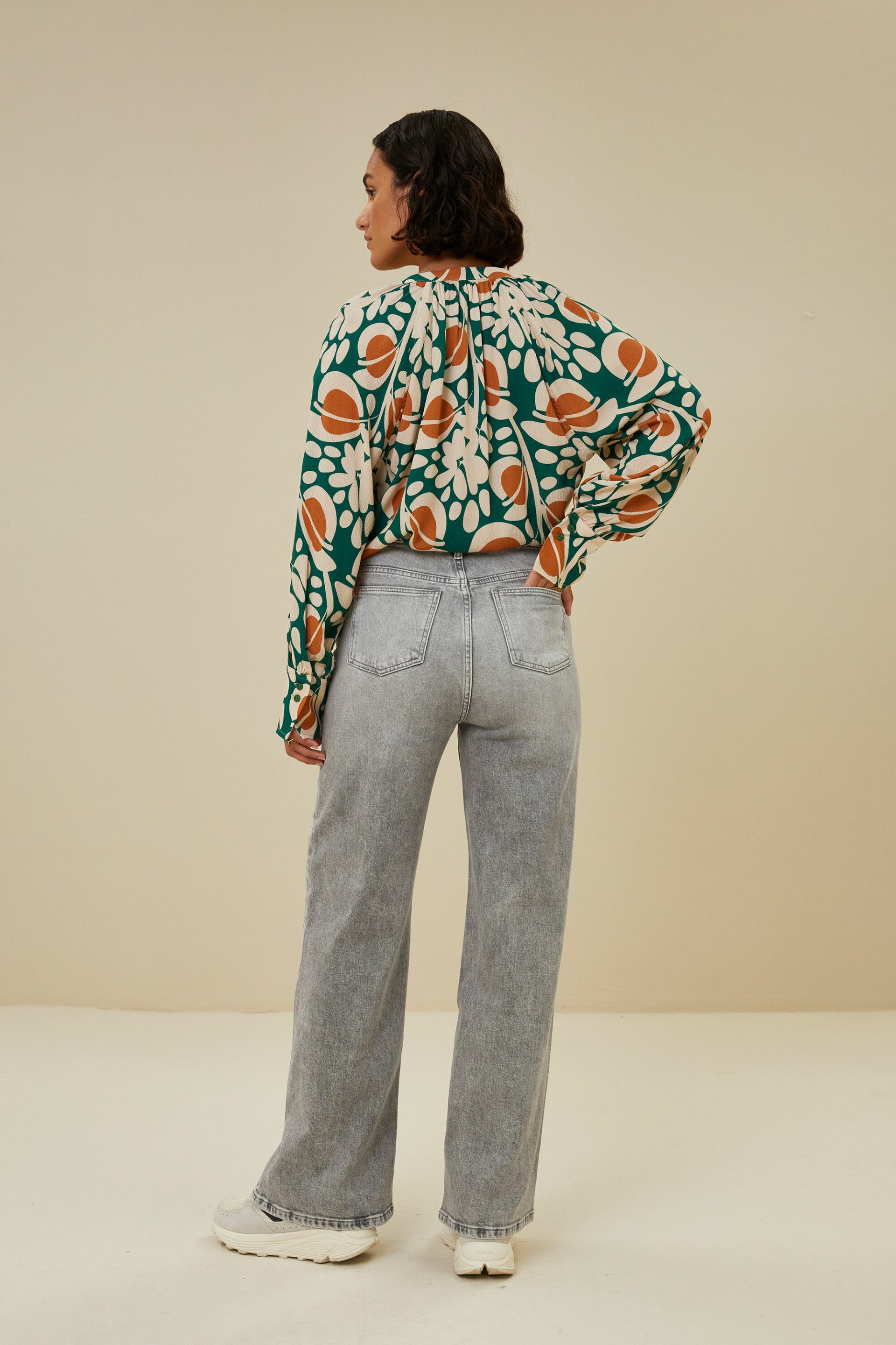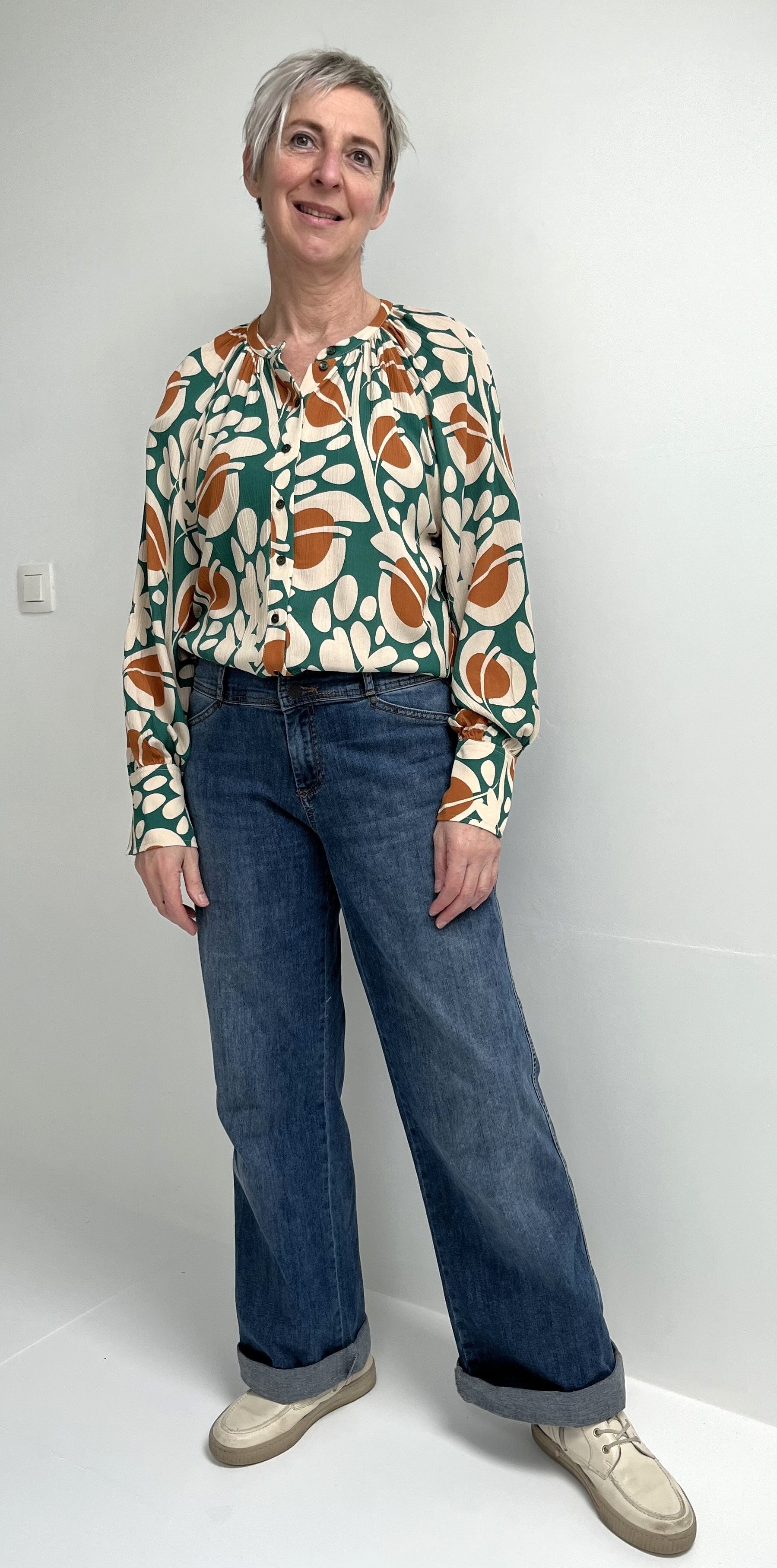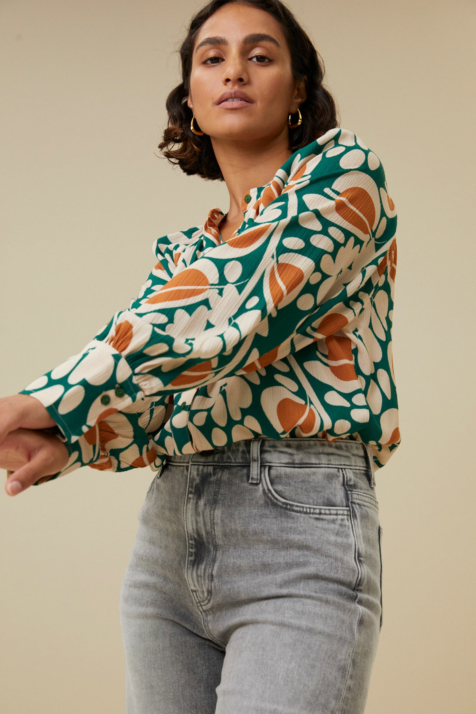 Deze prachtige blouse is gemaakt uit een rijke duurzame lenzing viscose kwaliteit. Dit milieuvriendelijke productie proces zorgt tot wel 50% minder co2 uitstoot & verlaagd de waterimpact. De pulp van de viscose komt uit gecertificeerde bossen. De kwaliteit is heerlijk soepel en valt comfortabel langs je lichaam. Verschillende details, zoals de plooien, kleurrijke print, pofmouw en knoopsluiting maken de blouse elegant en uniek. De blouse heeft een rechte pasvorm en raglanmouwen. Combineer met jouw favoriete jeans voor een vrouwelijke en casual look.