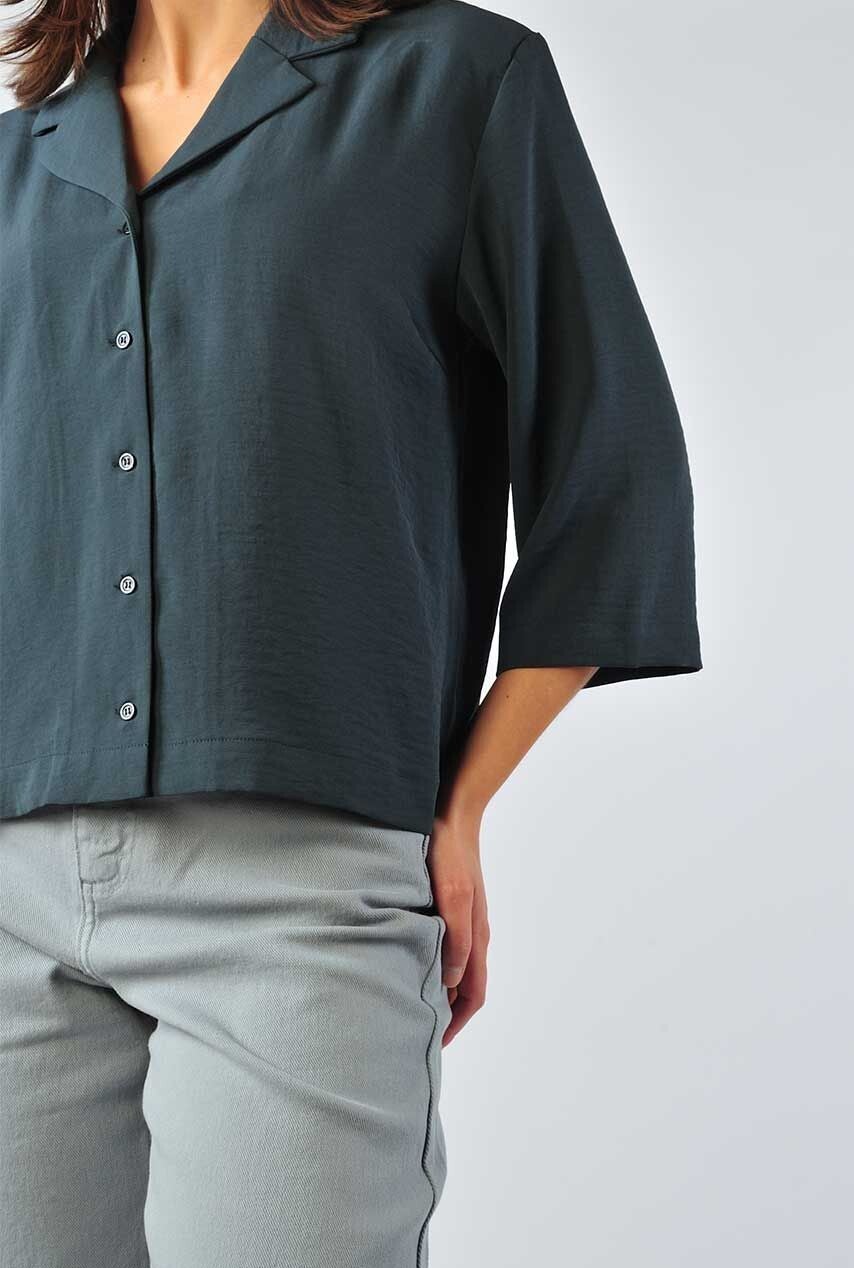 donkerblauw/grijs hemdje in een soepelvallende stof. Het hemd heeft 3/4 mouwen en een v-hals